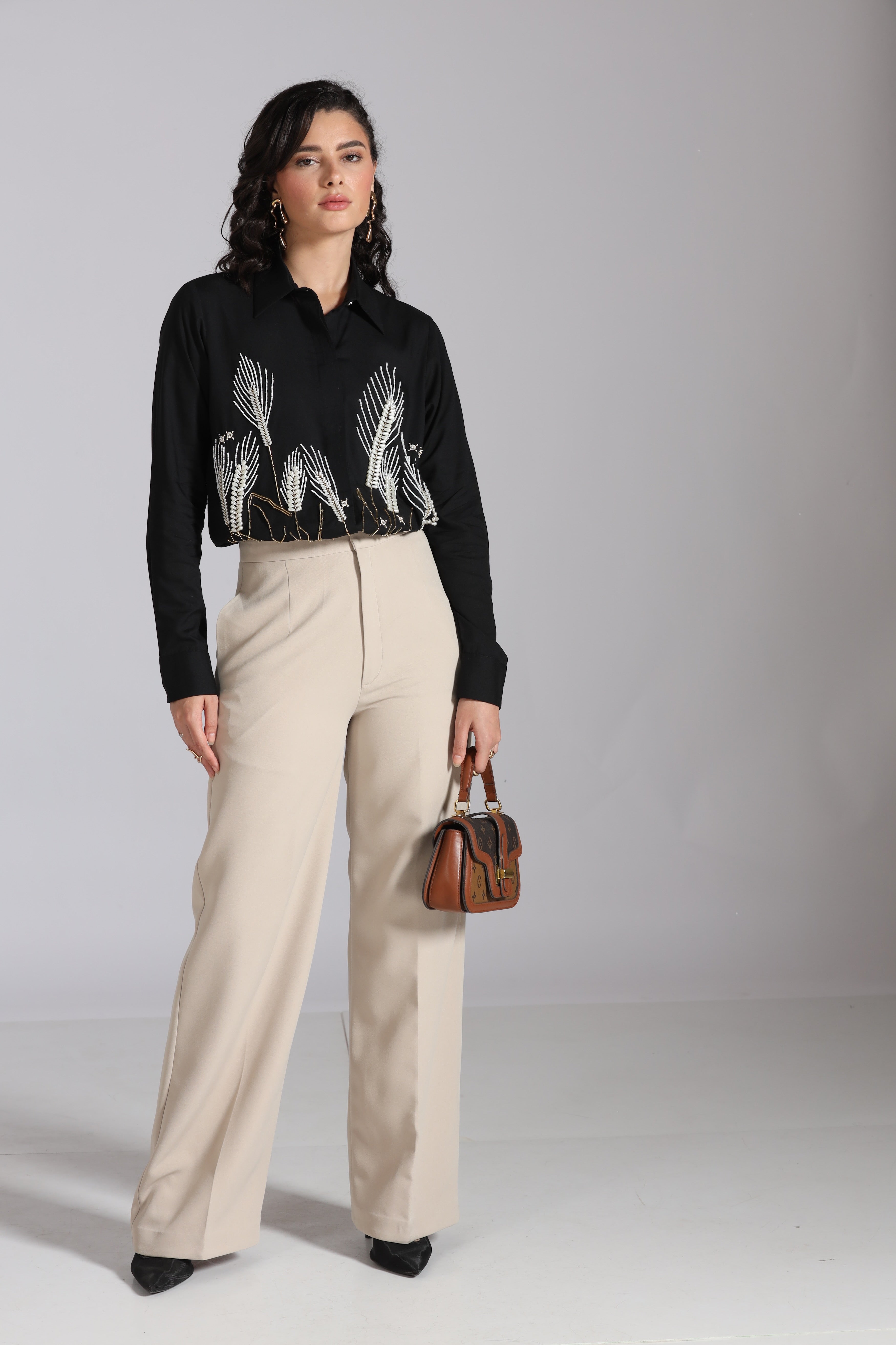 Refresh availabilityThis shirt is adorned with delicate hand embroidery of wheatgrass, highlighted with luminous pearl detailing. The subtle shimmer of the pearls adds sophistication while the nature-inspired motif brings a sense of freshness and charm. Perfect for elevating both casual and semi-formal looks.
