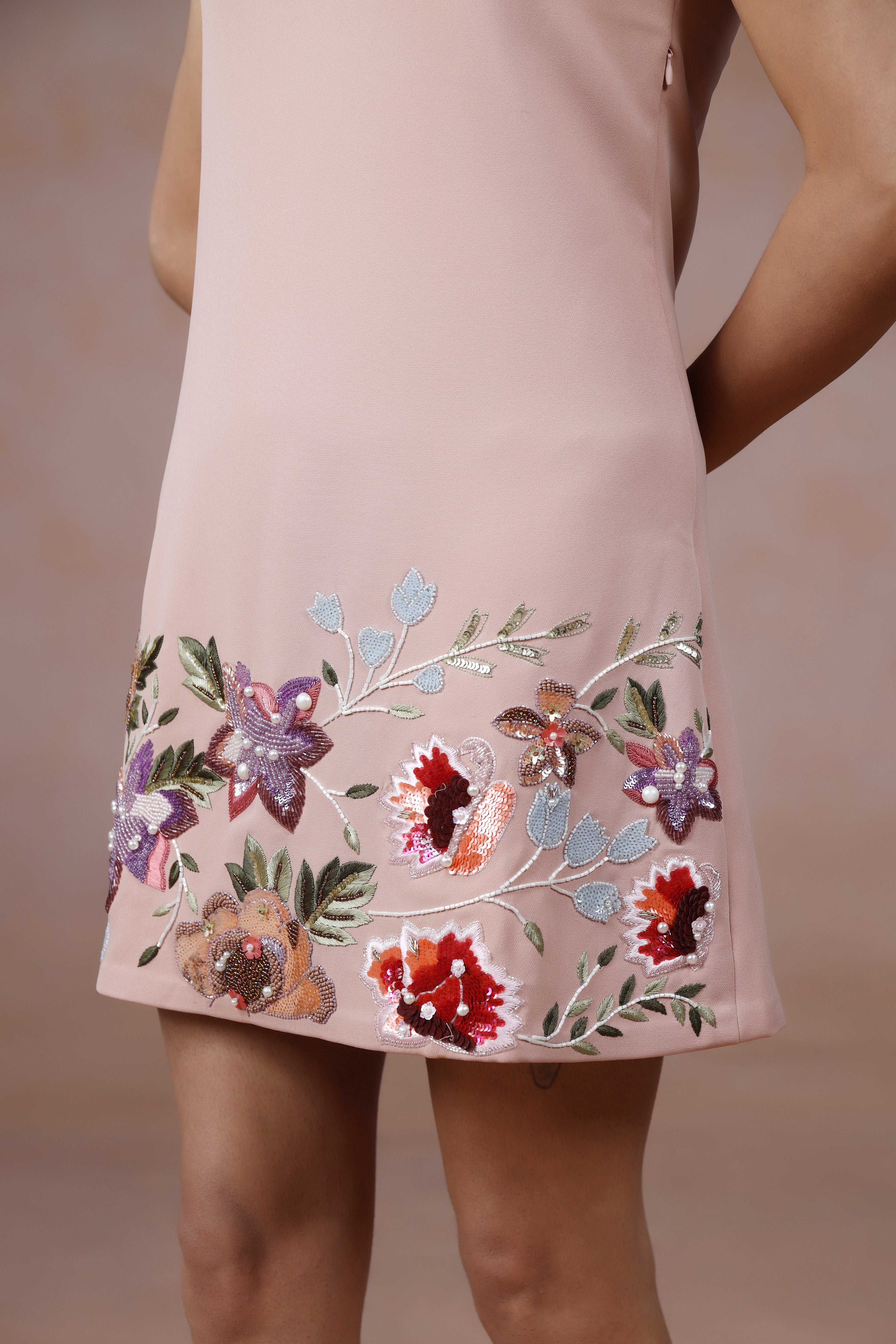 Refresh availabilityBring a touch of artistry to your wardrobe with this blush dress, beautifully finished with hand-embroidered flowers along the hemline. The soft hue and delicate detailing create a feminine, graceful look that transitions seamlessly from daytime gatherings to evening celebrations. A perfect blend of simplicity and charm.