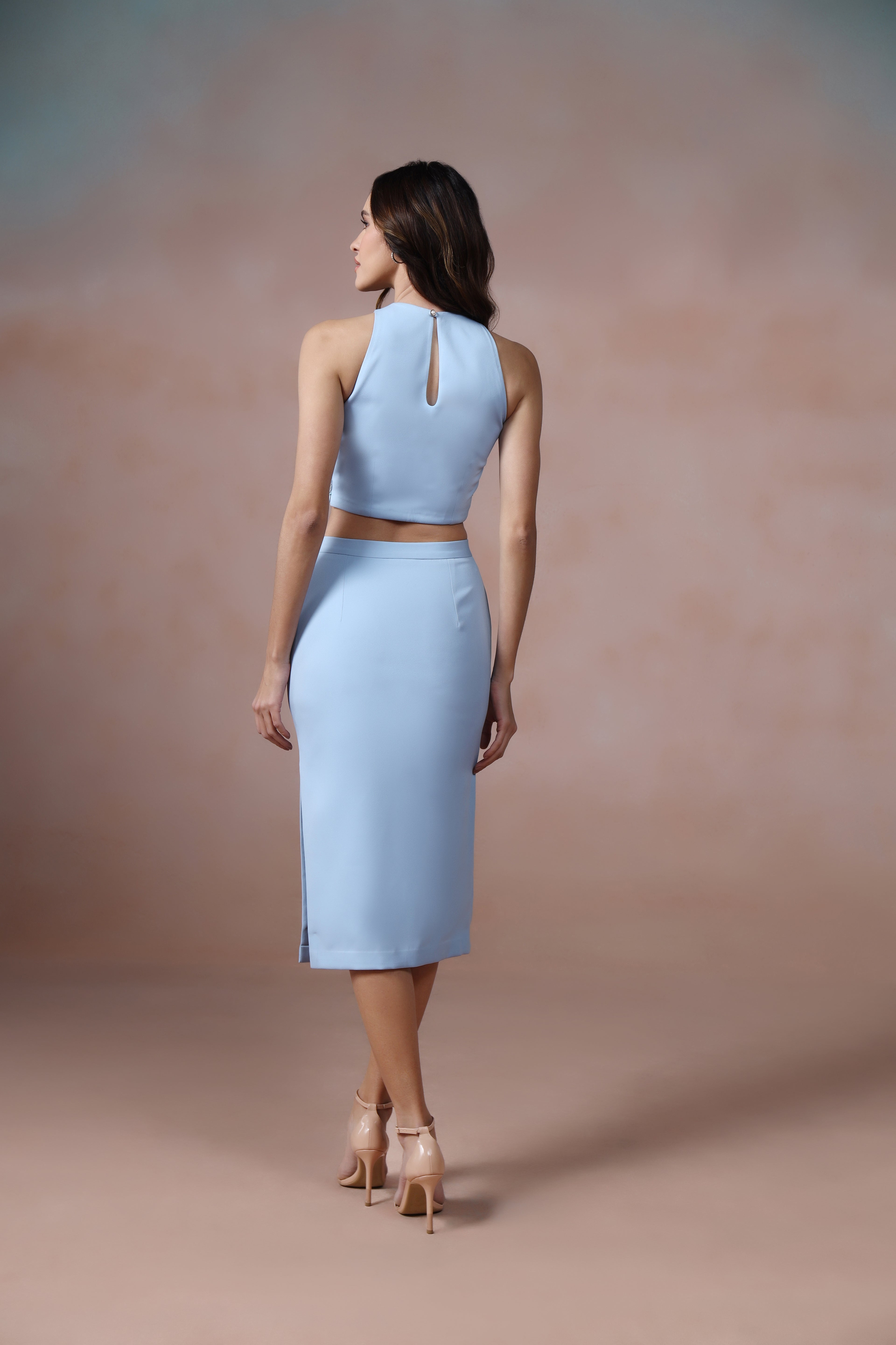 Designed to flatter while remaining effortless, this piece balances modern styling with timeless craftsmanship. The interplay of cool sky blue and sun-touched embroidery makes it a standout choice for occasions that call for refined yet contemporary dressing. Pairs beautifully with Honey Blue Skirt.