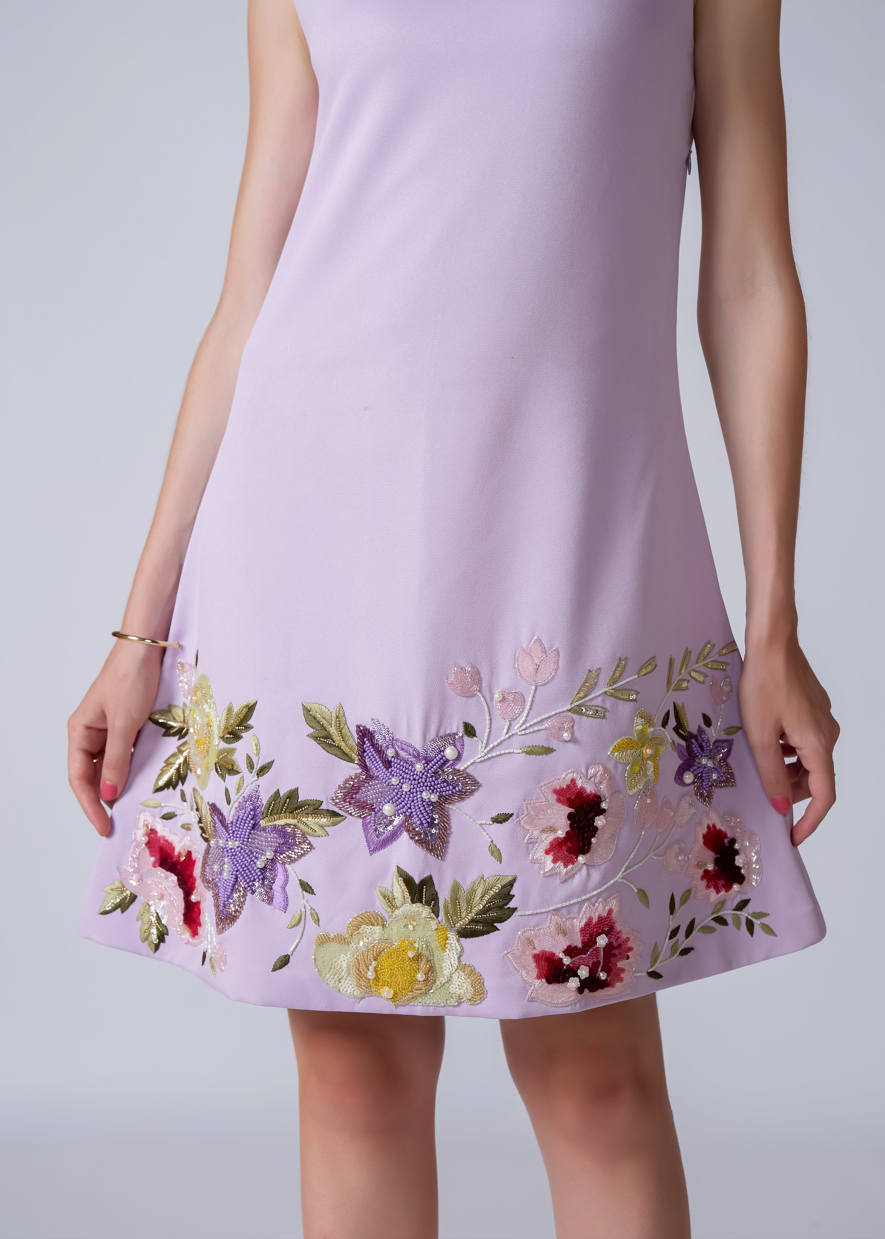 Refresh availabilityBring a touch of artistry to your wardrobe with this lilac dress, beautifully finished with hand-embroidered flowers along the hemline. The soft hue and delicate detailing create a feminine, graceful look that transitions seamlessly from daytime gatherings to evening celebrations. A perfect blend of simplicity and charm.